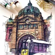 Flinders Station Jpg Image Urban Sketching Art Painting